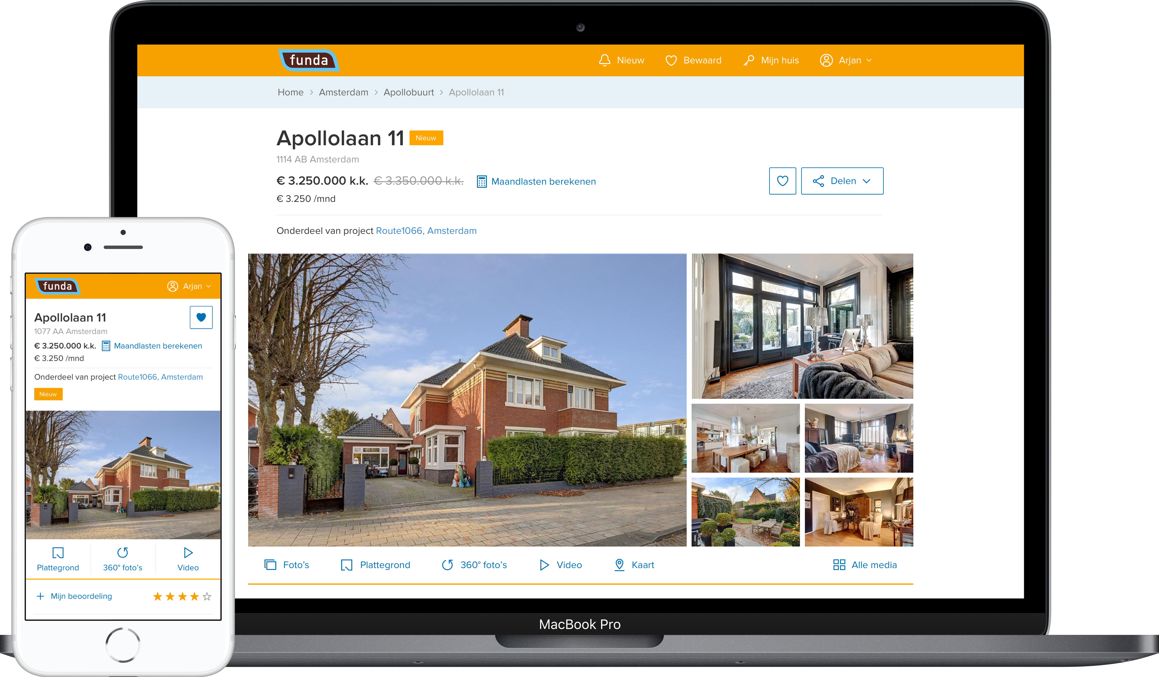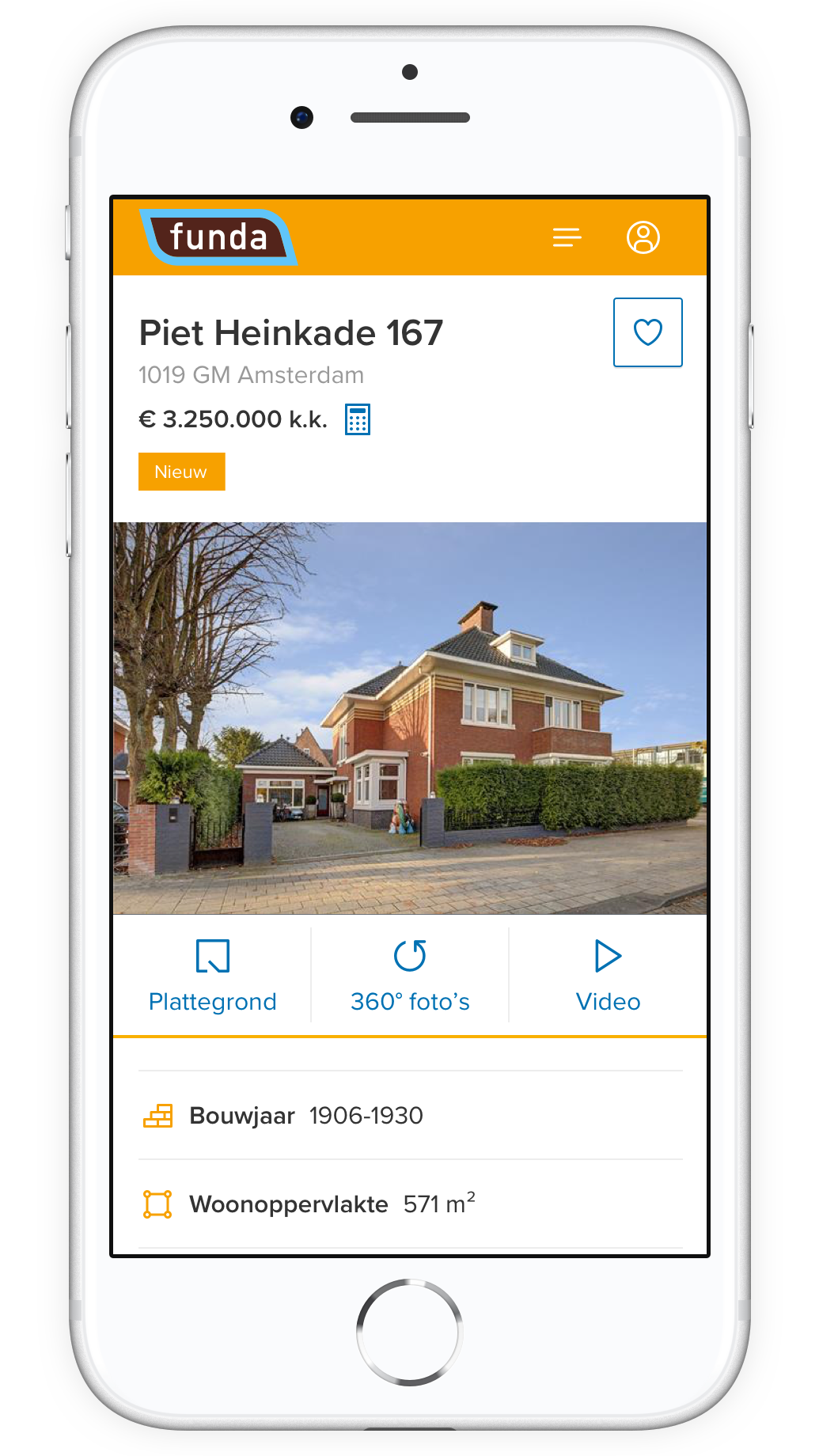 funda is The Netherlands’ biggest real estate website with ~45 milion visits a month. Together with my multidisciplinary team, I was responsible for everyting around the presentation of the houses. Also known as the Object Detail page.